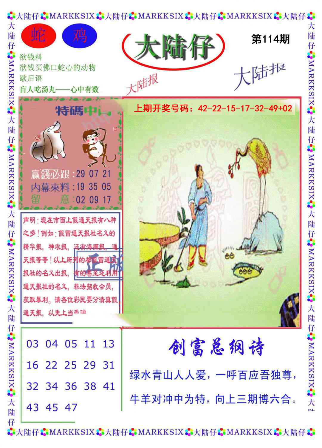 114期【单双中特】发财